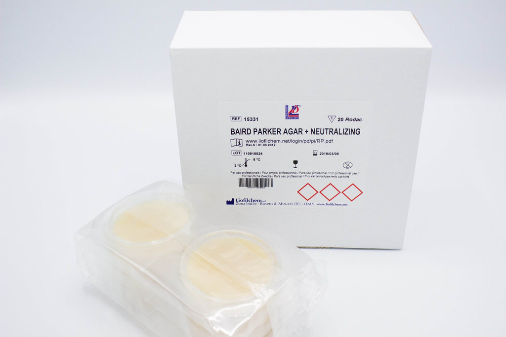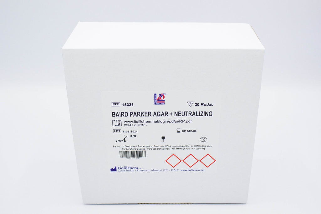 Baird Parker Agar + Neutralizing is a ready-to-use medium in contact plates used for environmental and personnel hygiene monitoring with inactivation of disinfectants.