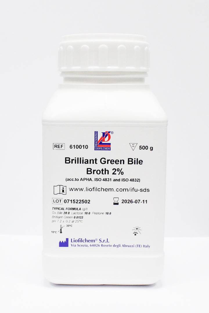 Brilliant Green Bile Broth 2% is formulated according to APHA, ISO 4831 and ISO 4832.