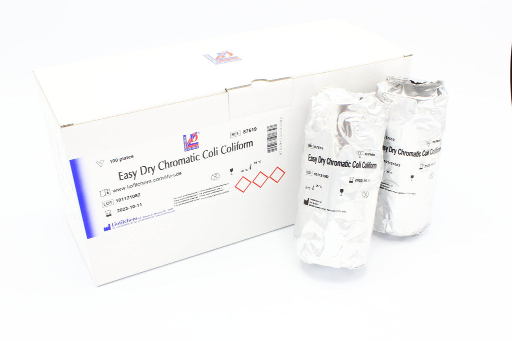Easy DryTM are optimal for the examination of large sample volumes by the membrane filter method. Easy DryTM Chromatic Coli Coliform is a chromogenic selective medium used for the detection and enumeration of β-glucuronidase-positive E. coli and coliform bacteria in raw materials, water, waste water, beverages, foods and other products.