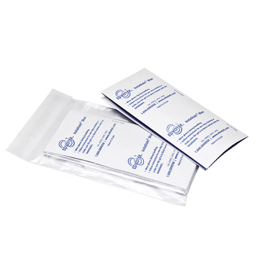 InstaStain® Blue, sufficient for 100 gels. Edvotek offers DNA Stains, which are reagents ideal for rapidly staining DNA fragments.